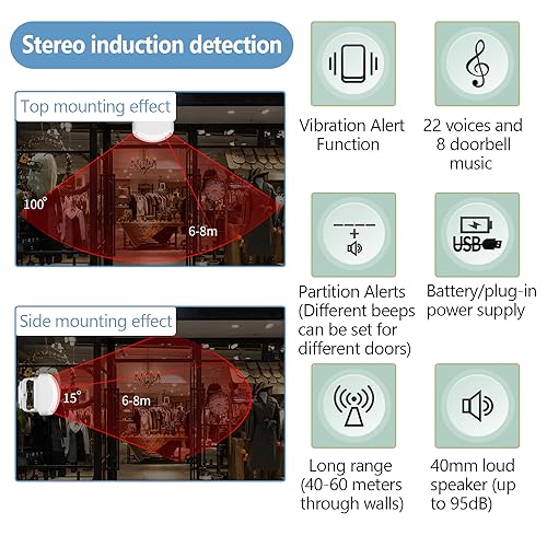 Specification: Alerta de Entrada, Alarma de Bienvenida, Avisador Puerta Tienda, Sensor de Movimiento con Alarma, Detector de Paso, Sensor de Presencia, Timbre con Sensor de Movimiento para Tienda de Negocios