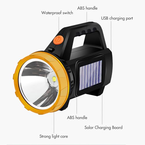Specification: ALLOMN Linterna LED solar, súper brillante, linterna LED de mano, potente linterna recargable con 3 modos de luz, linterna LED portátil para emergencia, camping al aire libre