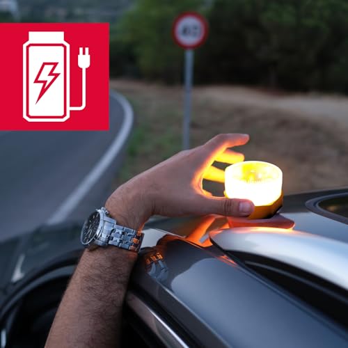 ⚠️ CUMPLE NORMATIVAS DE SEGURIDAD: La luz de emergencia V16 REGARGABLE que cumple con las normativas de seguridad más estrictas, homologada por laboratorio acreditado LCOE según los requisitos de la DGT. Con 12 horas de autonomía y base magnética de fijación, no requiere salir del vehículo para su activación en situaciones de emergencia. La importancia de esta luz se acentúa con la obligatoriedad de las luces de emergencia para coches a partir de enero de 2026. Un elemento esencial para conductores que priorizan la seguridad y cumplen con las normativas.