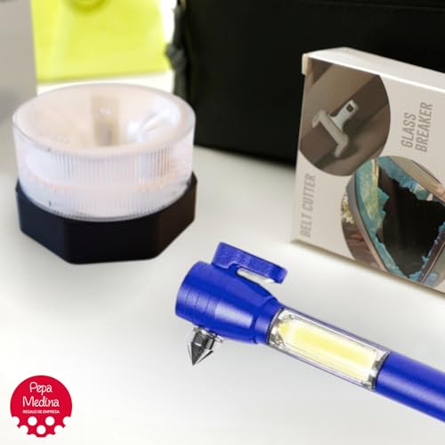 🔦 MULTIFUNCIÓN EN TUS MANOS: Nuestro Martillo de Emergencia es un todo en uno todoterreno para emergencias. Este martillo LED incluye una linterna blanca brillante, martillo rompecristales y cuchilla cortacinturones. Con 1 LED y 3 funciones, es la herramienta esencial para situaciones críticas en la carretera. Empoderando a los/las conductores/as con la preparación para enfrentar cualquier imprevisto.