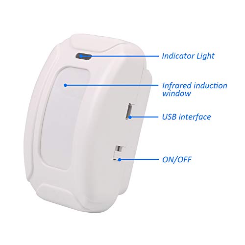 Instalación Sencilla: No se necesitan cables, la cinta de doble cara o los tornillos pueden sujetar firmemente el sensor infrarrojo. Se puede utilizar en el hogar, la oficina, la tienda minorista, el buzón de correo, el garaje, el camino de entrada u otro.