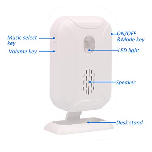 Control Remoto Incluido: Con control remoto, es muy conveniente encender / apagar el receptor, elegir los modos, cambiar las melodías y el volumen, emparejar el sensor extra con el receptor. La distancia del control remoto es de hasta 30 m / 98 pies.