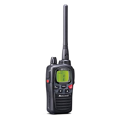 Specification: Midland – Walkie Talkie Profesional Largo Alcance G9 PRO, Radio IPX4 Waterproof para Softair y Outdoor, 101 Canales – 32 PMR446/69 LPD, Cobertura 12Km, Autonomía 23H, Pilas Recargables y Accesorios